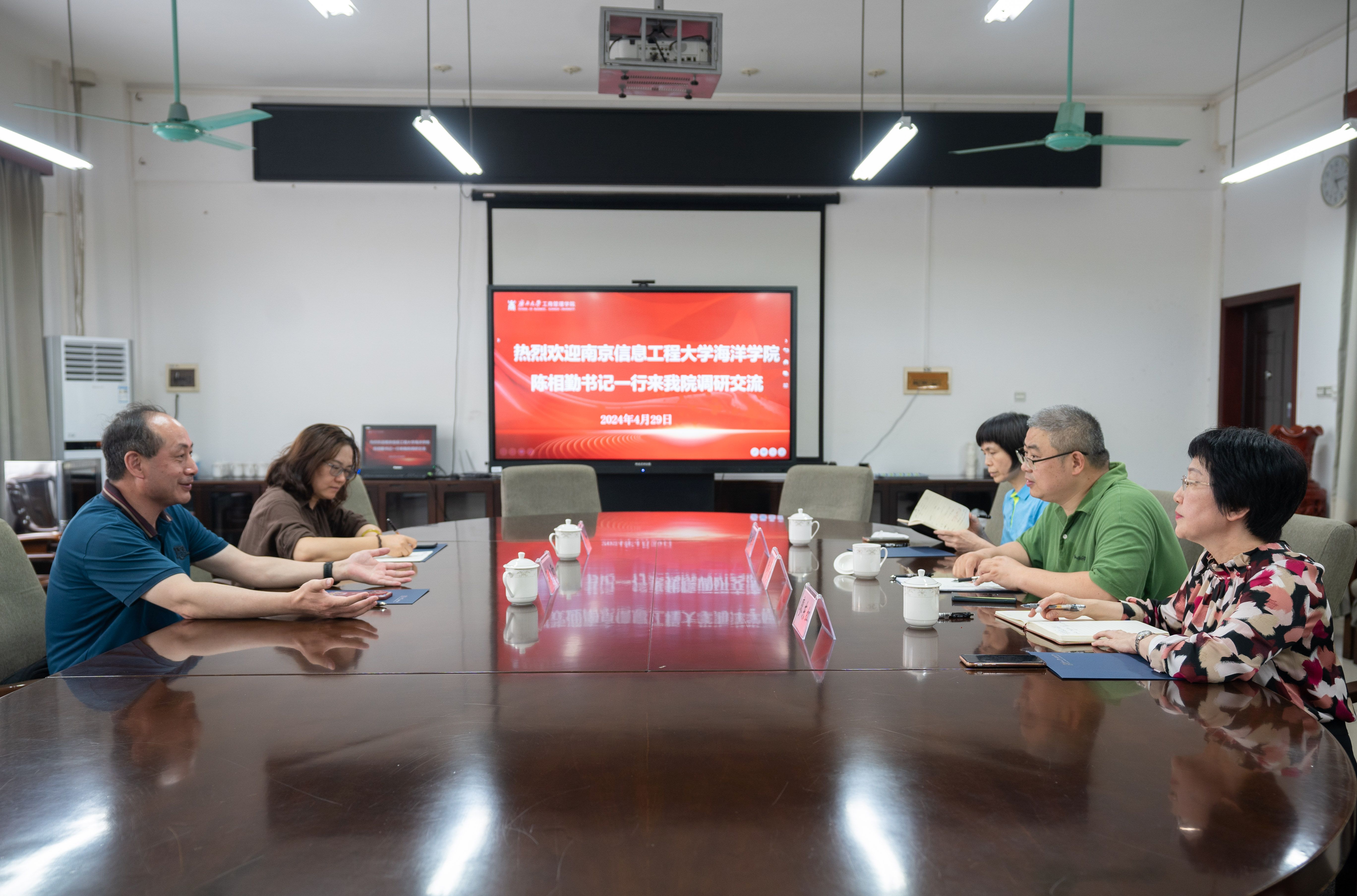 4月29日下午,南京信息工程大学海洋科学学院党委书记陈相勤,副书记、副院长石一到bat365官网调研交流。bat365官网党委副书记、院长朱帮助出席座谈会,副院长廖东红、专职辅导员张艳红陪同调研。