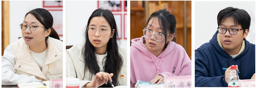 座谈中,同学们还从学习方法、就业压力、实习实践、职业规划、社团活动、学科项目竞赛、志愿服务等多方面谈感受、说困惑、讲认识、提建议,畅所欲言。在实习实践方面,同学们建议学院能进一步与大企业加强合作,提供更多资源和实习岗位,开展更多有意义的实践活动。在就业方面,同学们建议学院能进一步加强就业帮扶工作的个性化和针对性,拓展就业市场、拓宽就业渠道。在课外活动方面,同学们建议学院能多结合专业特色和民族特色,开展形式多样的校园文化活动……