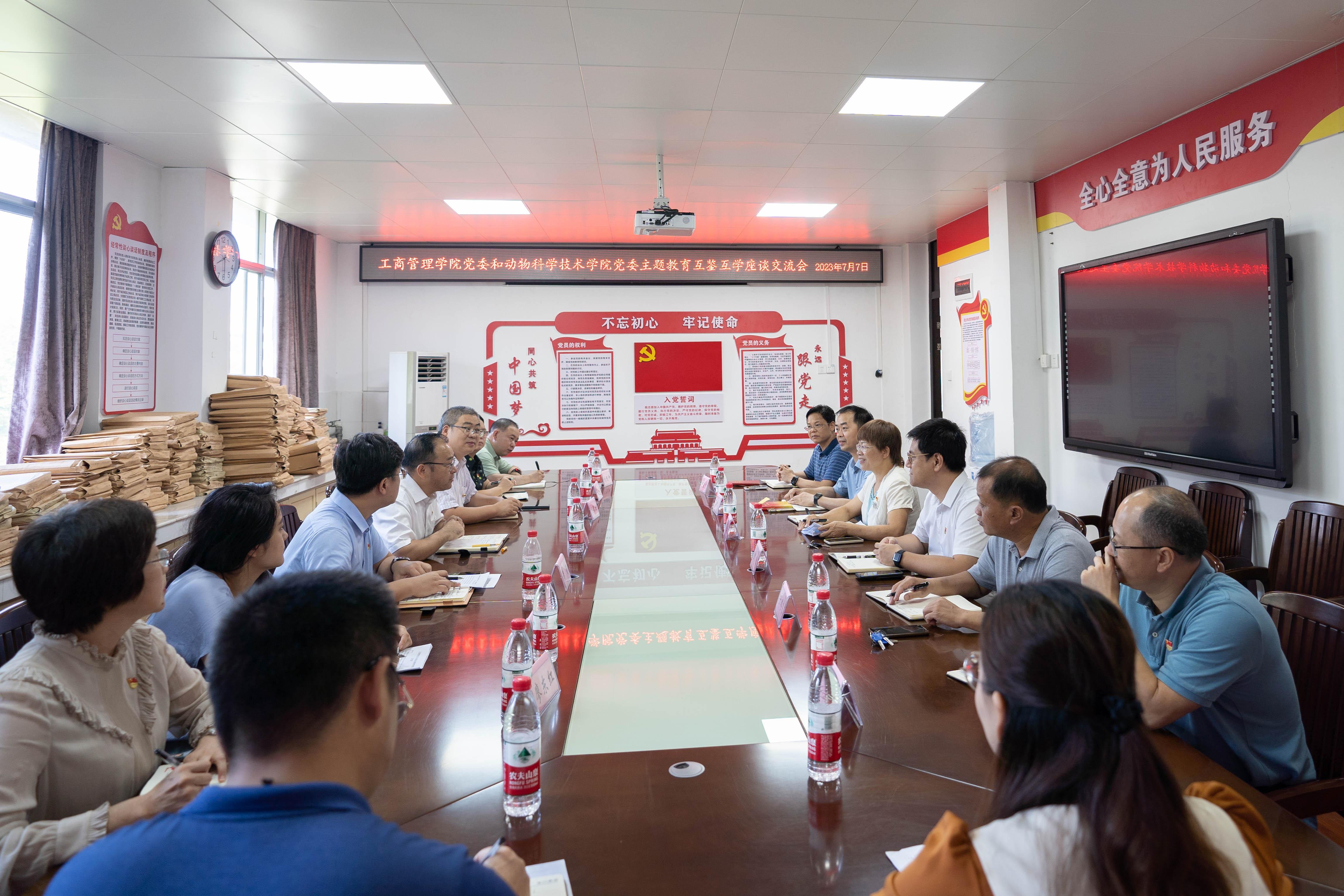 7月7日上午,beat365官方网站党委与动物科学技术学院党委在动物科学技术学院302会议室举行主题教育互鉴互学座谈交流会。统战部閤明勇副部长,督导组成员田春、刘小燕到会指导。