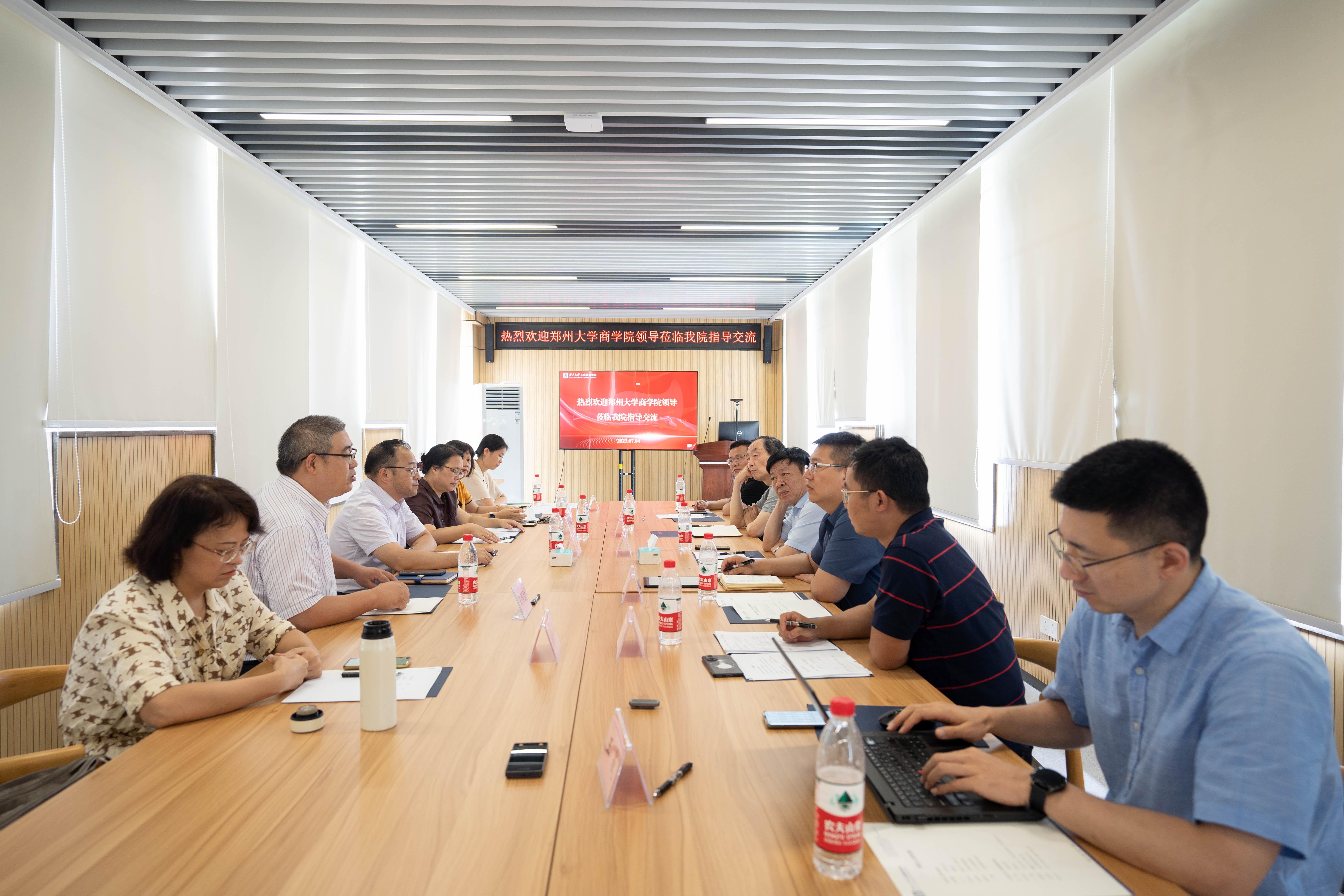 7月4日上午,郑州大学商学院党委书记苗惠卿一行到bat365官网调研,就专业学位办学理念、管理体制、培养模式和特色方向等事宜进行座谈交流。座谈会由bat365官网党委书记罗诚主持,院长朱帮助、副院长朱少英及研究生管理中心相关工作人员参会。