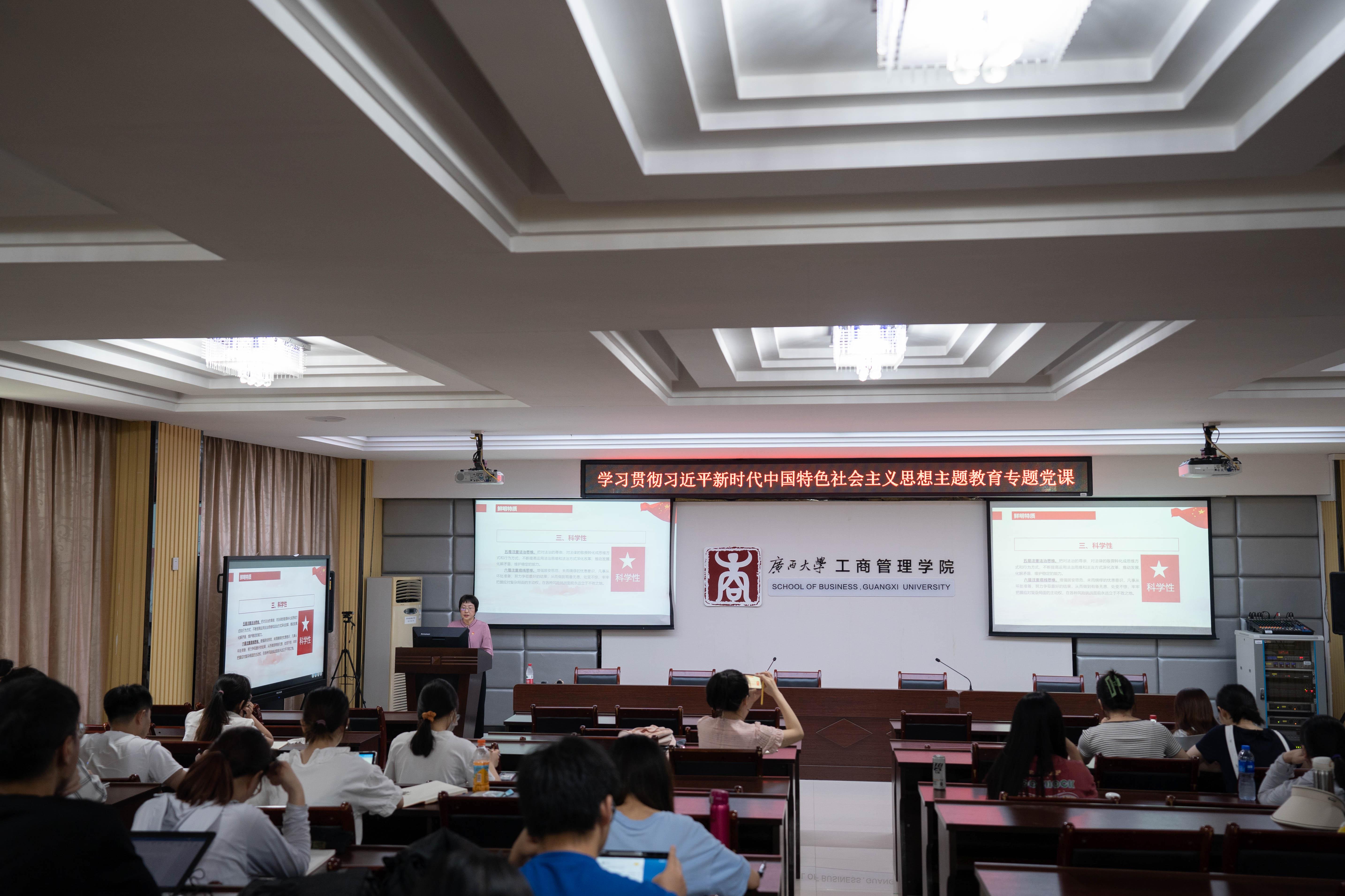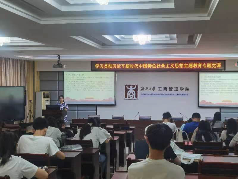 学院副院长廖东红以《学习贯彻习近平新时代中国特色社会主义思想》为题,在学院124报告厅为研究生第一党支部和本科生第四党支部讲授专题党课,她就习近平新时代中国特色社会主义思想主题教育概述、主要内容以及鲜明特质进行了阐述。她号召大家以主题教育为契机,深入学习贯彻党的二十大精神,努力把学院建成“区域有品牌,国内有特色,国际有影响”的新时代高水平beat365官方网站。