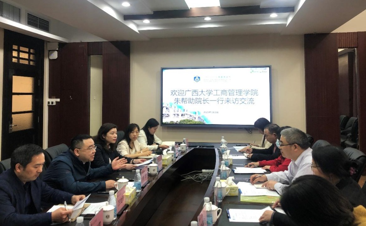 2023年3月2日-3日,bat365官网院长朱帮助带队一行7人赴华南理工大学beat365官方网站、暨南大学管理学院调研,并就新商科背景下的学科建设、师资队伍建设、本科教育、研究生教育、国际认证等方面的先进经验开展座谈交流。副院长朱少英、申韬、刘民坤等陪同调研。
