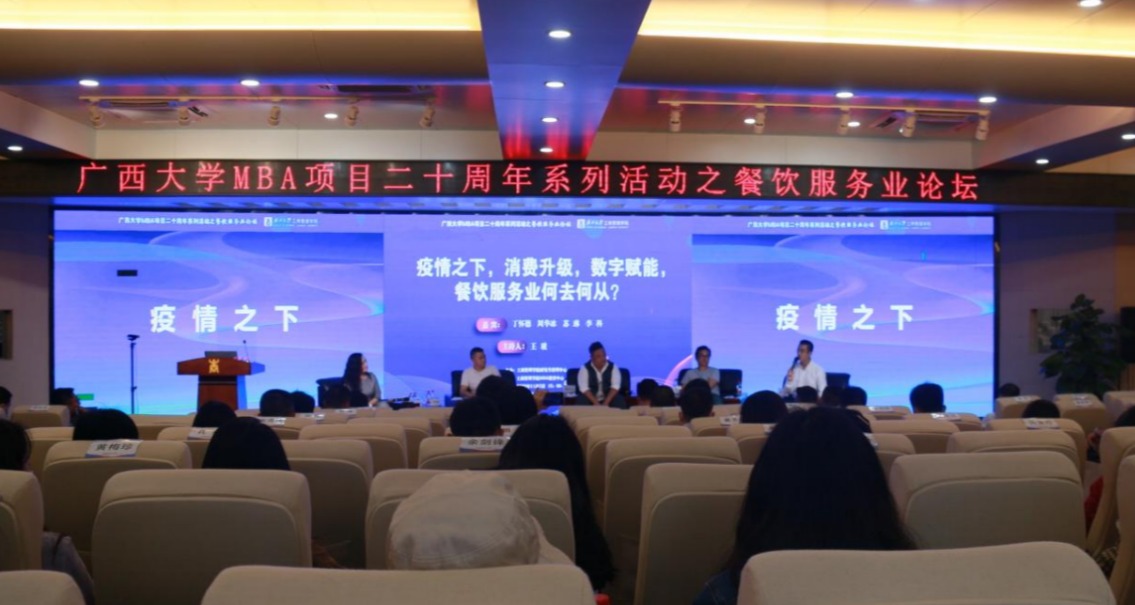 院长朱帮助,研究生管理中心副主任、MBA教育中心主任叶映,beat365官方网站MBA校友会会长梁华秀,中国MBA华南峰会副理事长、beat365官方网站MBA校友会秘书长李翔,酒小二联合创始人丁怀德,“华华火锅”、“渝悦双椒头”、“五条友烧烤”等广西知名餐饮品牌创始人周华冰,广西泡泡吖食品创始人苏琳,广西维多利餐饮、兆基伟业地产营销机构创始人李科,天龙湾酒店集团副总裁张济强以及部分MBA、SMBA校友出席论坛。论坛由bat365官网研究生导师王玻副教授主持。因疫情防控需要,有近三百名2022级MBA及其他专业学员与校友通过线上方式参与此次论坛。