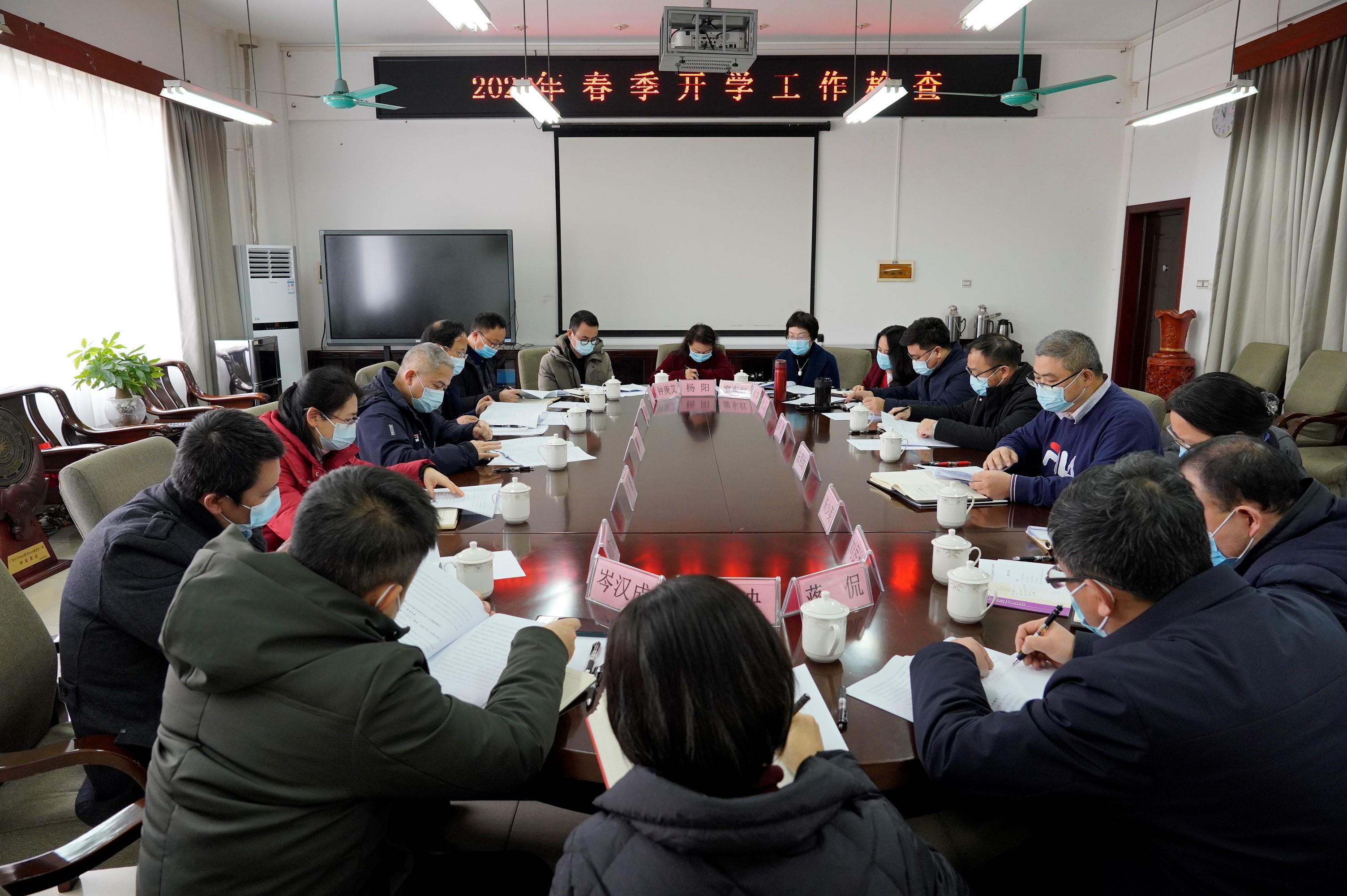 2月14日是我校2022年春季学期开学的第一天。当天上午,校党委常委、副校长刘向带领校纪委副书记罗国斌、人力资源处副处长周誉、科技处副处长余波、国有资产与实验室管理处副处长周海斌等检查成员一行6人,到bat365官网开展2022年春季学期开学检查工作。学院党委书记罗诚,学院党委副书记、院长朱帮助等班子成员参加了开学检查工作汇报会。