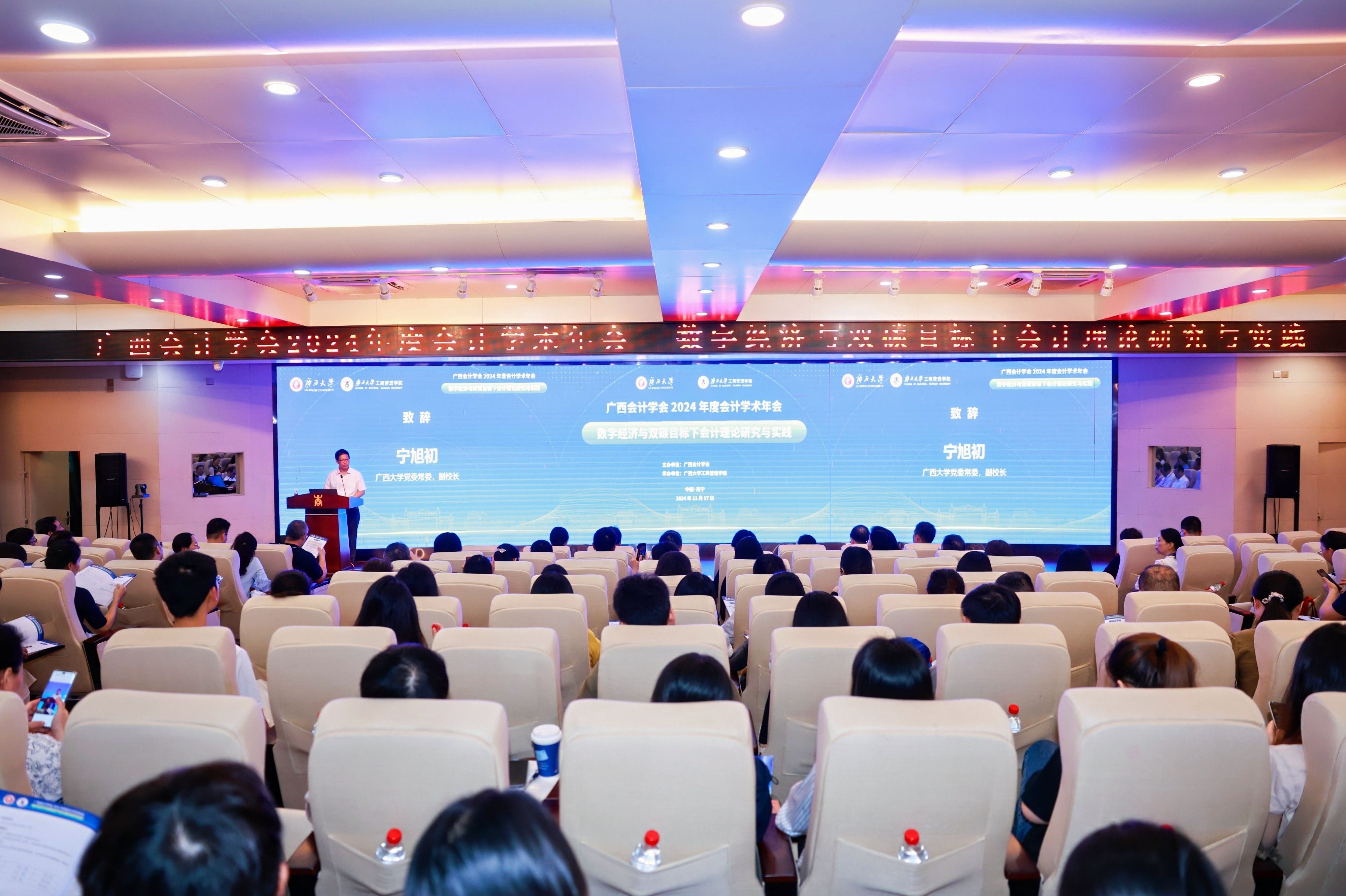 11月16日至18日,由广西会计学会主办,beat365官方网站承办的广西会计学会2024年度会计学术年会在我校举行。beat365官方网站党委常委、副校长宁旭初,广西会计学会会长兰丽萍,广西壮族自治区财政厅副厅长陈海涛出席开幕式并致辞。beat365官方网站党委常委、副校长夏国恩会见了与会嘉宾。广西会计学会秘书长、财政厅会计管理处处长黄高留主持开幕式。