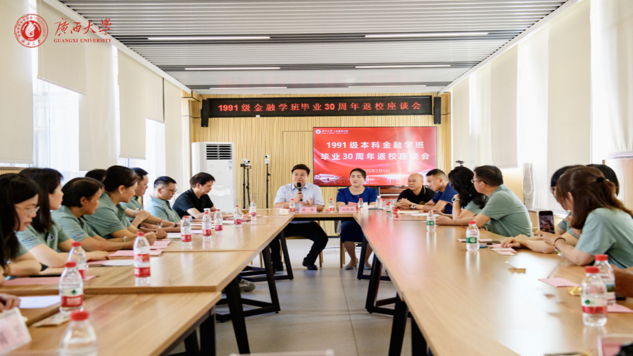 7月5日,仲夏的绿城南宁草木葱茏,beat365官方网站校园内欢声笑语不断,洋溢着久别重逢的喜悦。beat365官方网站以“勤朴数载 厚学致远”为主题,精心组织秩年校友返校活动,邀请阔别母校十载、廿载、卅载的校友重返校园。近50位来自不同年级、班级的工商学子从各地汇聚西大,共叙同窗情、畅谈学院发展。学院党委书记黄晋,副院长朱少英,经济学院党委副书记刘梦娟出席座谈会,与返校校友们亲切交流。校友工作与政企服务办公室主任覃朝勇、MBA教育中心主任叶映、学院专职组织员黄照温,金融91级本科班主任黄绥彪等参加座谈会。