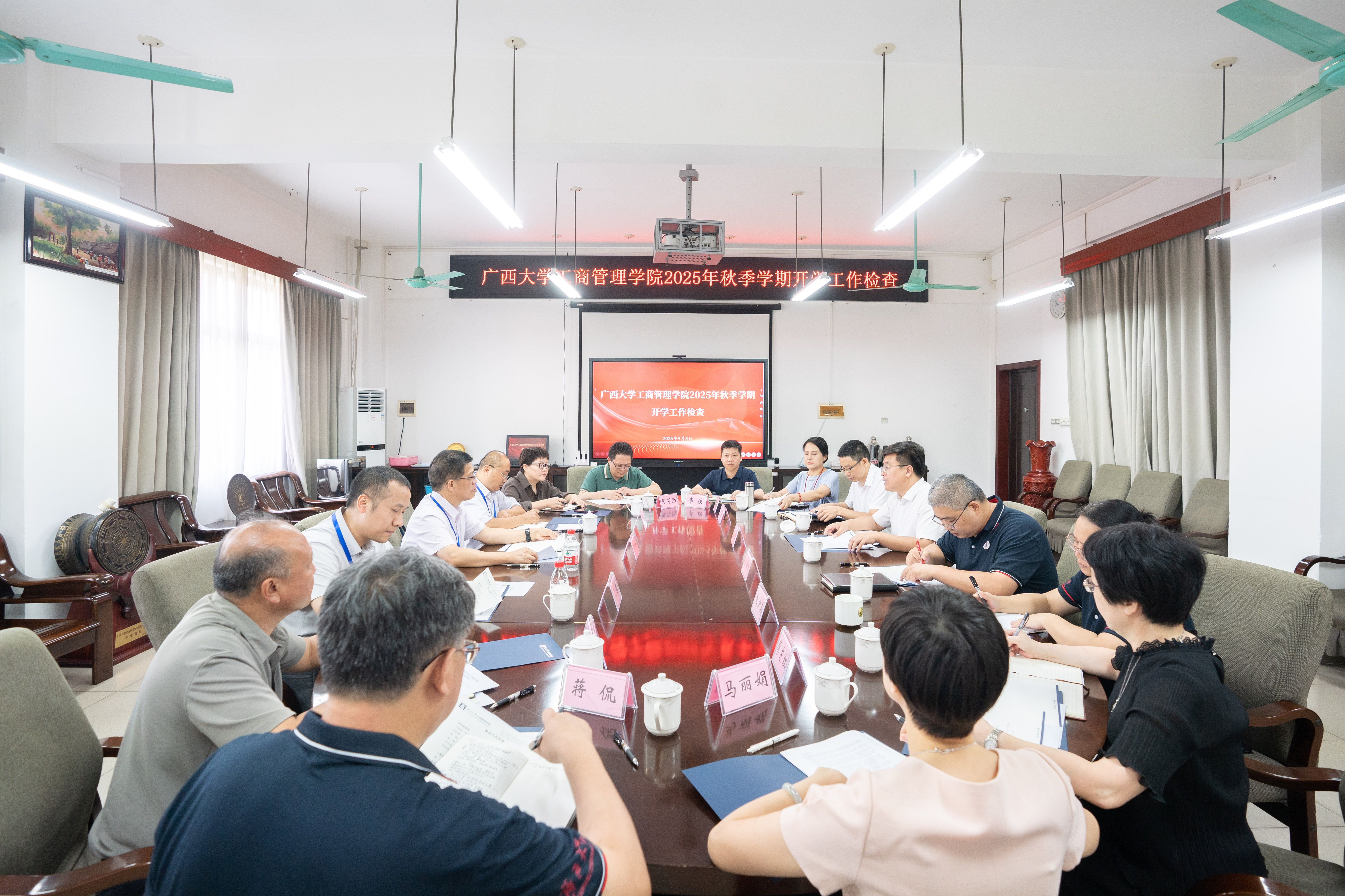 9月8日上午,校党委副书记宁旭初带队到bat365官网开展新学期开学检查工作,进行座谈交流,并随堂听课。学院党委书记黄晋、院长朱帮助等学院班子成员,以及院长助理、部门负责人等参加座谈会。