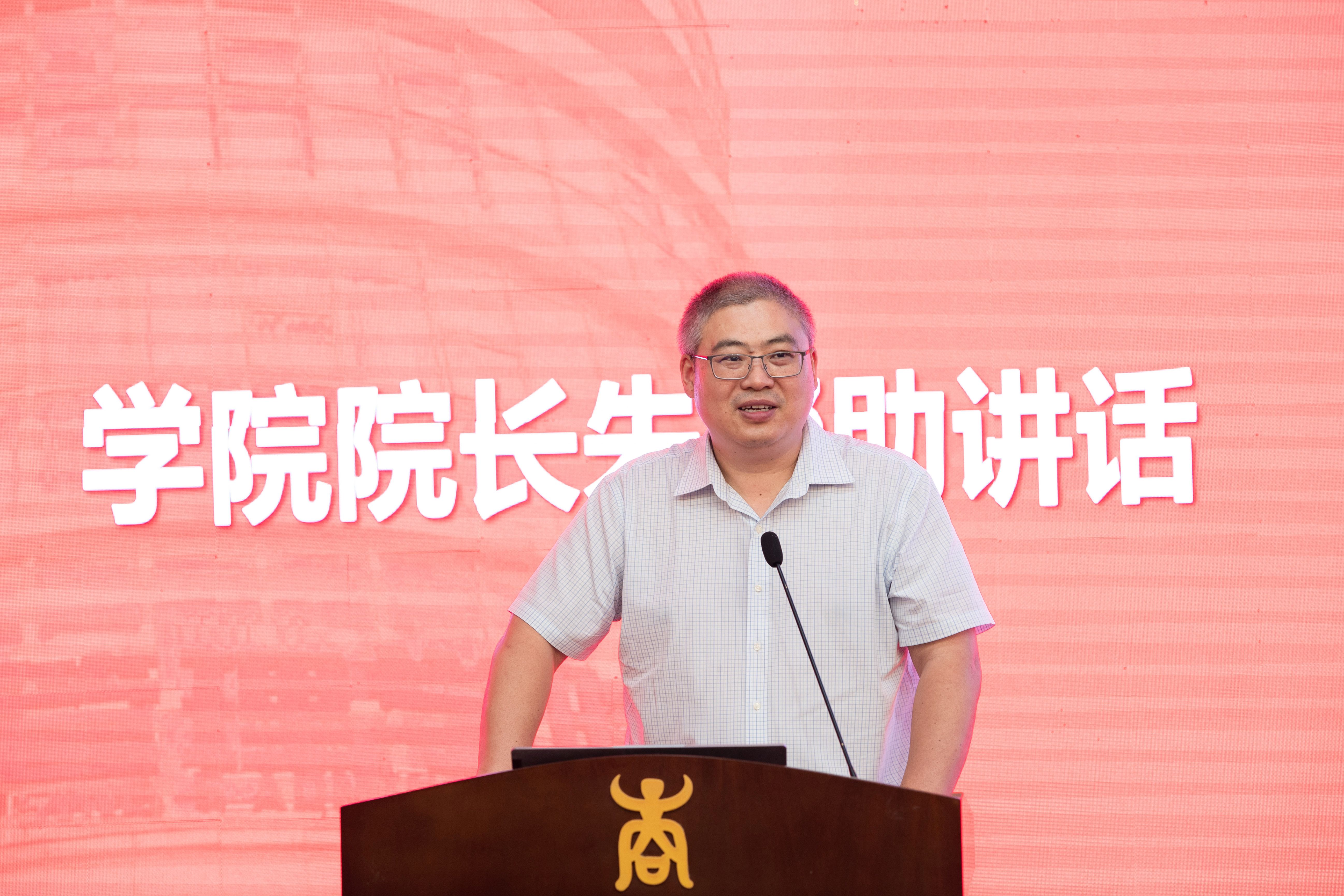 朱帮助在讲话中向加入学院大家庭的新生表示欢迎和祝贺,向辛勤培育新生的家长和老师致以敬意和感谢。他就学院的历史沿革、学科建设、专业特色、成果荣誉等方面情况向新生们进行介绍。他指出,大学是一个全新的起点,也是一个充满挑战和机遇的舞台,新生们要尽快适应大学的学习和生活节奏,树立明确的目标和规划,不断提升学习能力、思辨能力、沟通能力,进而增强自己的核心竞争力,为今后的职业生涯打下坚实基础。他祝愿新生们在学院度过充实而美好的大学时光,在这里找到“志同道合的伙伴”,找到“值得深耕的方向”,找到“属于自己的管理之道”。