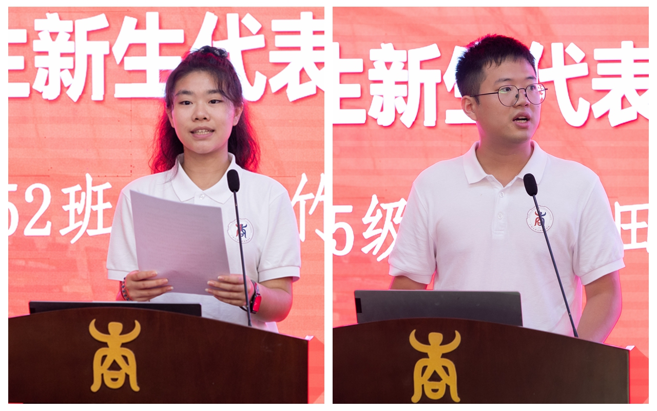 会计学232班秦博轩、2023级工商管理学硕陈星伶代表老生发言。秦博轩鼓励新生们要认识自己,做好规划;坚持学习,勇于创新;参与实践,创造价值。陈星伶建议新生们保持好奇心和探索精神,以良好的心态、持之以恒的毅力与耐心面对学术挑战。