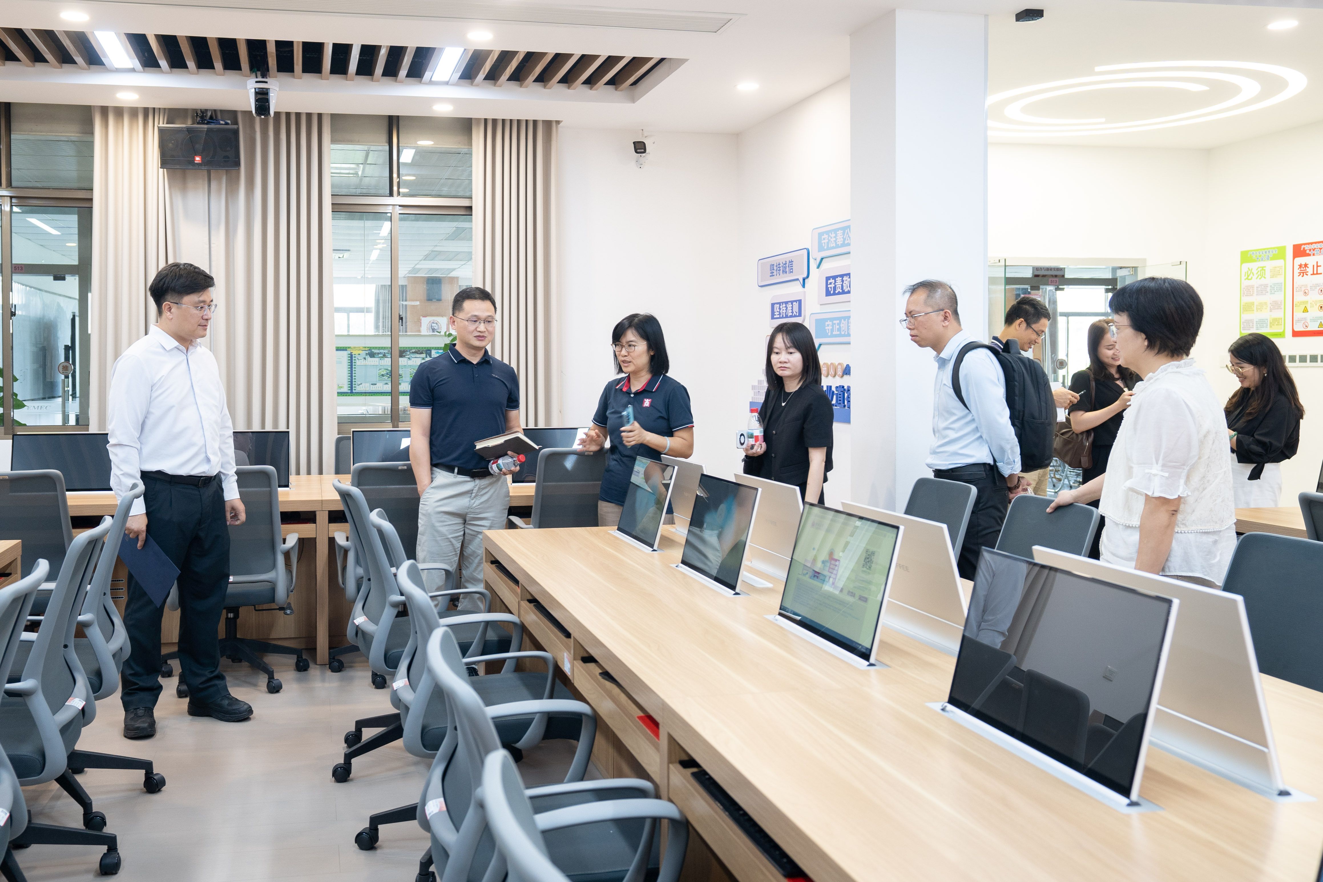 仪式结束后,金蝶公司一行在学院领导陪同下参观了bat365官网智能会计与智慧财务实验室等,双方围绕金蝶软件在学院的落地应用及未来合作方向进行了深入交流。