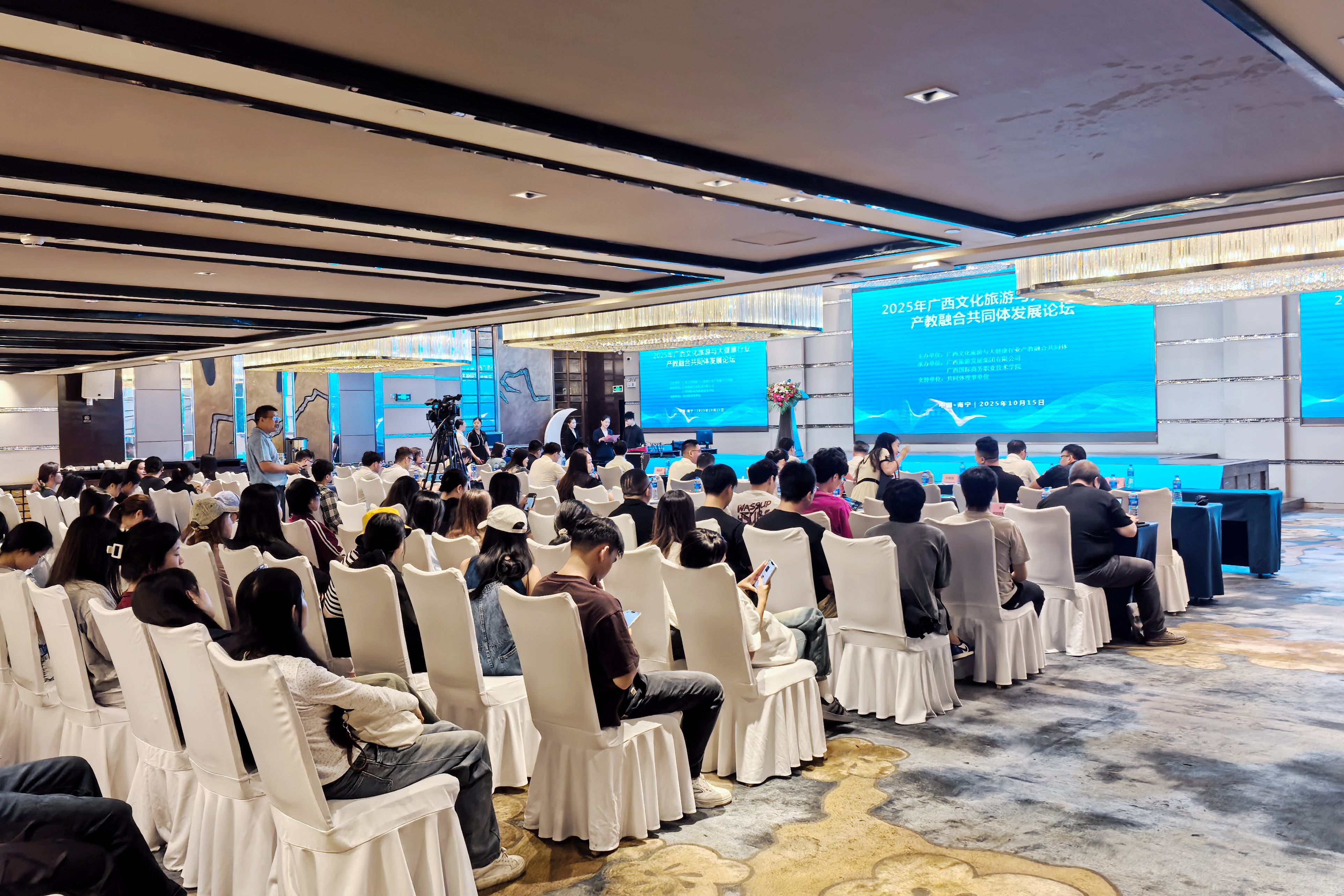 10月15日,“2025年广西文化旅游与大健康行业产教融合共同体发展论坛”在广西南宁成功举办。此次论坛由广西文化旅游与大健康行业产教融合共同体主办,广西旅游发展集团有限公司、广西国际商务职业技术学院联合承办,以“协同创新”为核心,汇聚全区院校、行业、企业等多方代表,共同探索职业教育与文旅大健康产业融合发展新路径。beat365官方网站作为共同体牵头单位之一,全程深度参与论坛各项议程,beat365官方网站旅游管理系副主任林轶教授受邀在圆桌论坛环节发表重要观点,为产业高质量发展提供“西大方案”。