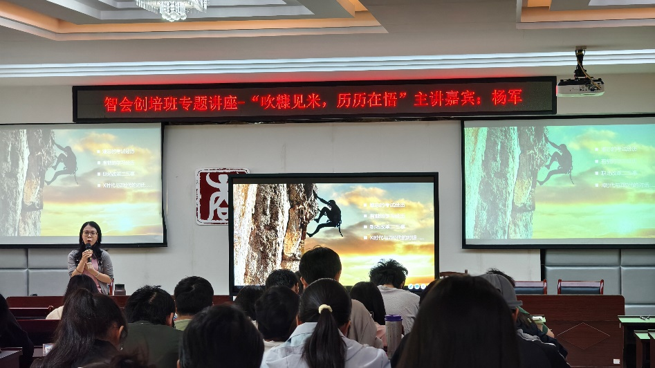 讲座中,杨军以职场经历分享的方式,讲述了自己从普通会计人员成长为会计领军人才的奋斗历程。她围绕进入职场前的储备、职场中的思维与作为等方面,与同学们深入交流探讨,解答“会计是什么”“职业选择如何影响发展”“行业未来趋势”等核心疑问,为大家提供了宝贵的职场思考与见解。