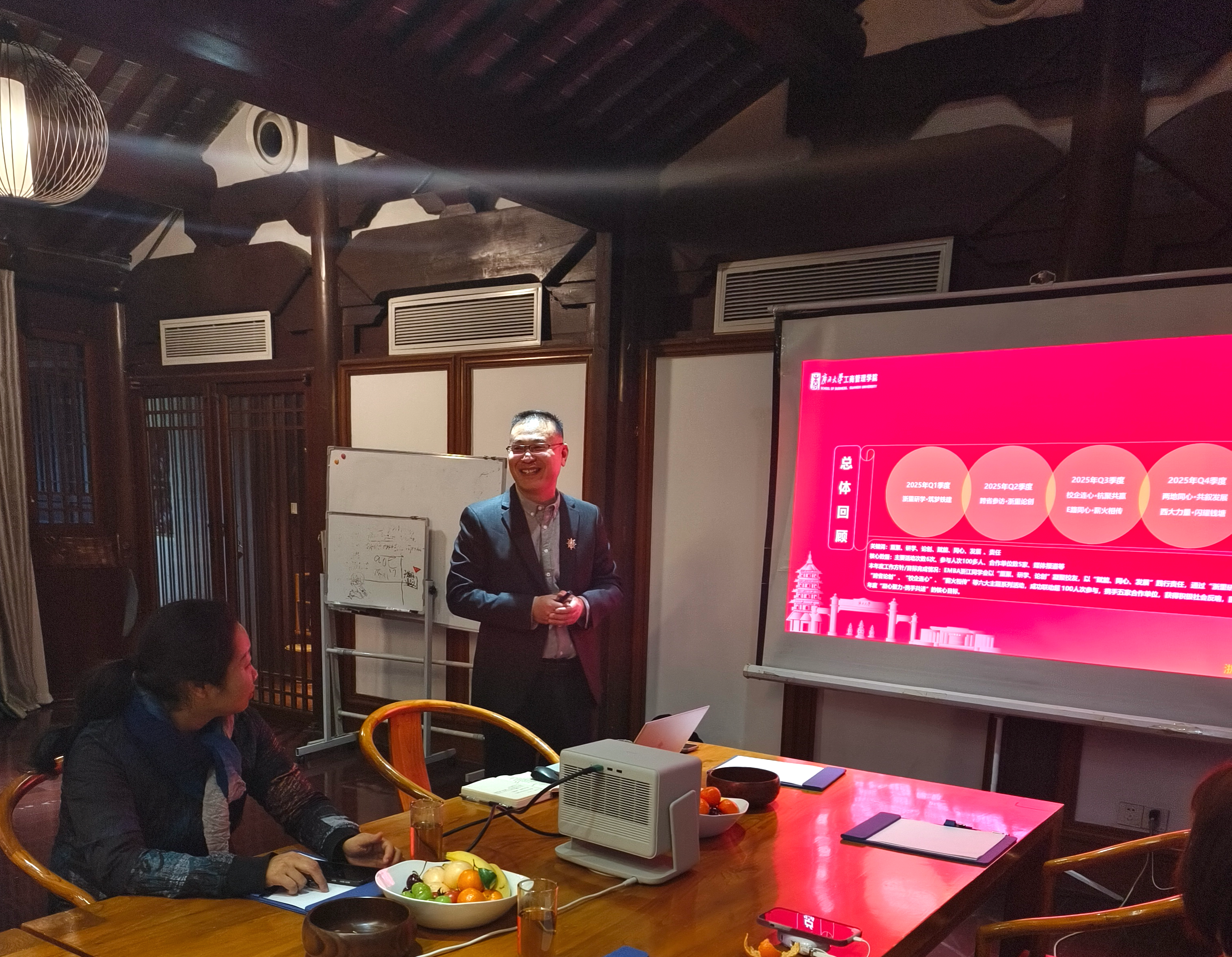 学院党委书记黄晋对同学会2025年度工作成果给予高度肯定,向杨炎春会长及全体理事会成员、校友的辛勤付出表示感谢。他指出,校友是学院最宝贵的财富,同学会是连接学院与校友的重要纽带,并对同学会未来发展提出三点期望:一是紧扣学院90周年庆、学校百年校庆等重要节点,汇聚校友智慧,助力学院学校发展;二是传承学院精神,突出地域特色,深化校友联结,打造“西大浙江”活动品牌;三是加强跨区域联动,实现校友与母校共赢发展。