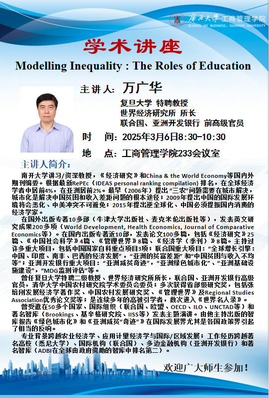 学术讲座|Modelling Inequality : The Roles of Education