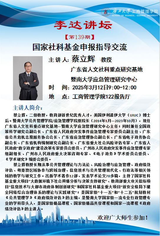 李达讲坛第139期|国家社科基金申报指导交流