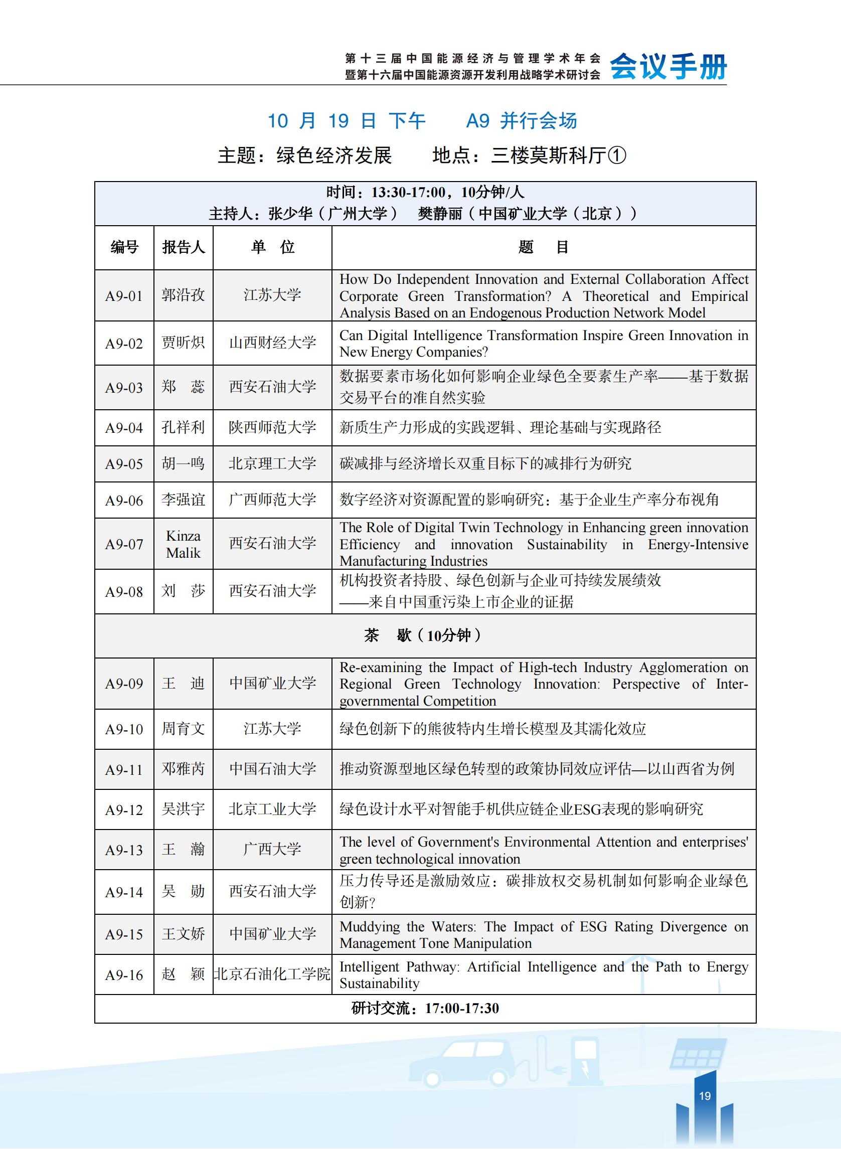 第十三届中国能源经济与管理学术年会暨第十六届中国能源资源开发利用战略学术研讨会会议手册