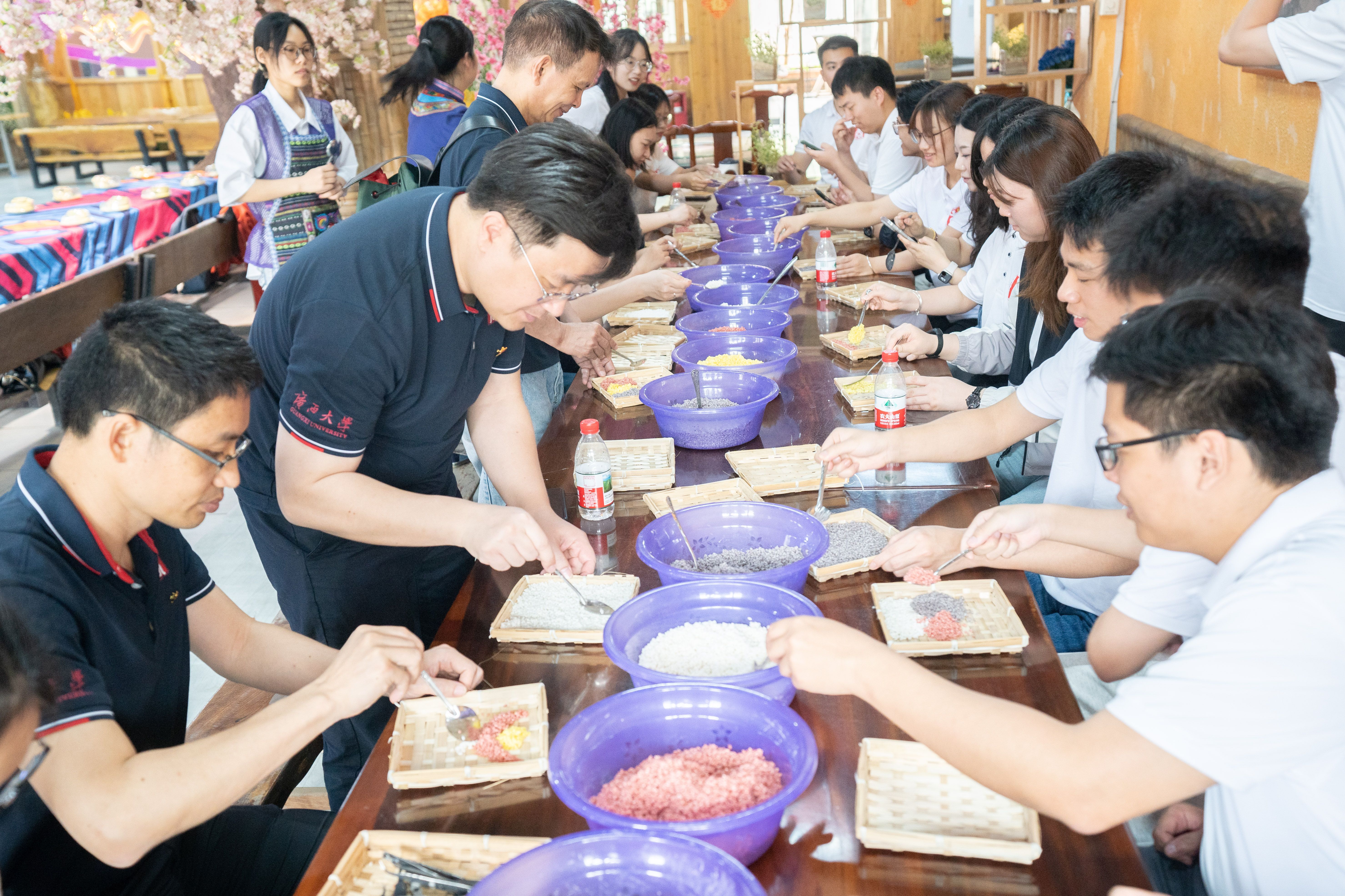 3月28日,beat365官方网站组织师生前往武鸣五彩壮乡文化产业园,开展了一场别开生面的广西三月三民族文化研学活动。学院党委书记黄晋、副书记肖克宁与师生们一同参与活动,深入体验民俗风情,传承民族文化,铸牢中华民族共同体意识。