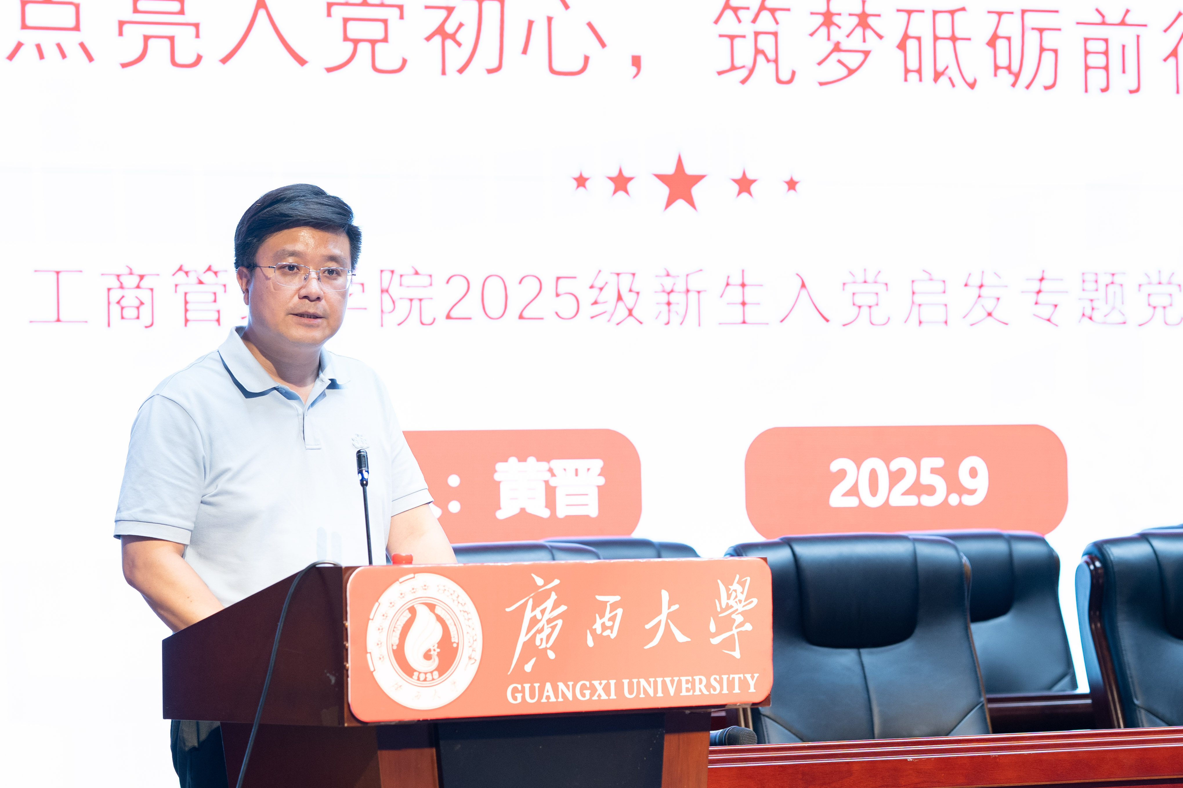 为激发学院2025级新生对党的信仰和追求,引导青年学生听党话、跟党走,9月17日下午,bat365官网党委在学校大学生活动中心小剧场举办2025级新生入党启发教育专题党课。专题党课由学院党委书记黄晋主讲,党委副书记肖克宁、学工组辅导员管雅娣与全体新生一同参与学习。