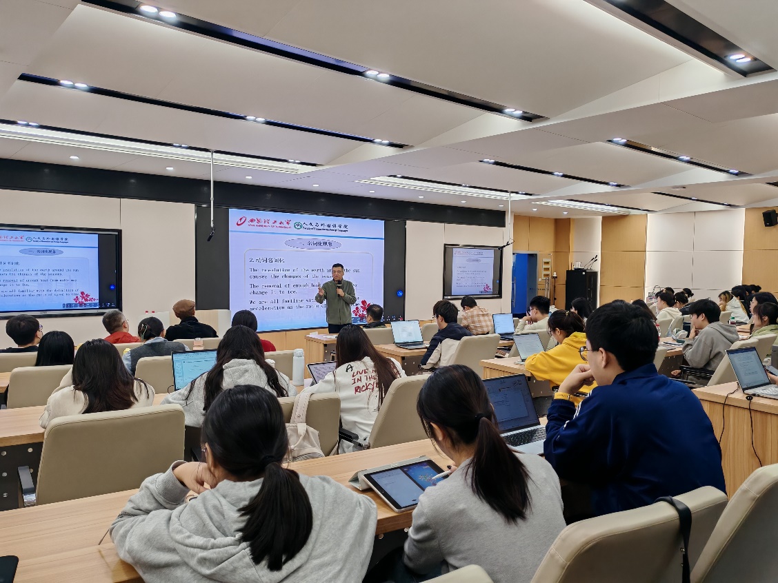 在互动交流环节,现场师生踊跃提问,围绕学术英语写作中常见的语法误区、论文表达优化技巧、国际期刊投稿语言适配等问题,与延宏教授展开面对面探讨。延宏教授结合自身丰富经验,针对每个问题逐一细致解答,既有具体案例示范,又有方法总结,现场交流氛围浓厚,师生均表示收获颇丰。随着互动环节的圆满收尾,第28期“名师课堂”在师生们的热烈掌声中落下帷幕。