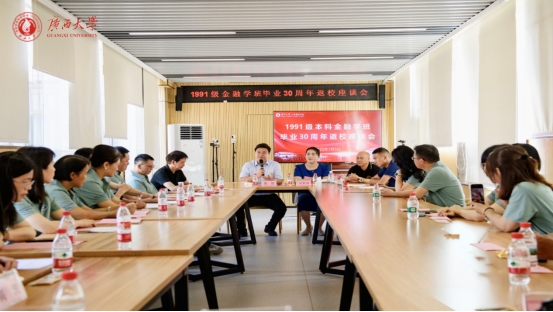beat365官方网站党委书记黄晋、副院长朱少英、校友工作与政企服务办公室主任覃朝勇、MBA教育中心主任叶映、学院党委办黄照温;经济学院党委副书记刘梦娟、金融91级本科班主任黄绥彪、辅导员刘威等出席了校友返校座谈会。