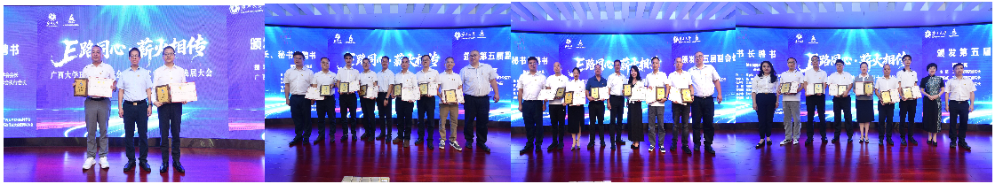 在后续的聘书颁发仪式上,校党委副书记宁旭初为第五届会长苏尔田、执行会长庞勤颁发聘书;校友工作办公室主任周海斌、beat365官方网站党委书记黄晋、院长朱帮助共同为第五届副会长及秘书长陈轲授聘;学院副院长申韬、廖东红、韦铁为第五届副秘书长颁发聘书。每一份聘书都承载着信任与期待,现场掌声此起彼伏,见证新一届机构的正式启航。