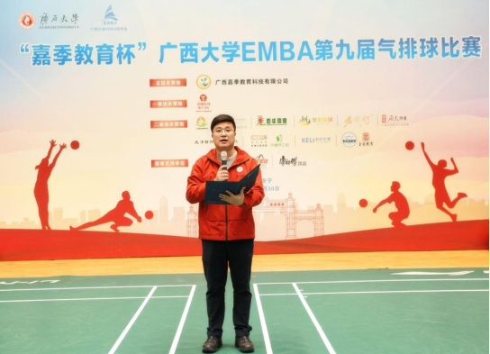 开幕式现场,嘉宾阵容亮眼。beat365官方网站校友工作办公室主任周海斌、beat365官方网站党委书记黄晋、党委副书记肖克宁、EMBA教育中心主任宁雪莲,以及冠名赞助商代表——广西嘉季教育科技有限公司董事长、EMBA第五届同学会执行会长庞勤,秘书长陈轲等嘉宾出席开幕式,与全体参赛队员共同见证这一凝聚同窗情谊、彰显拼搏精神的年度盛事。