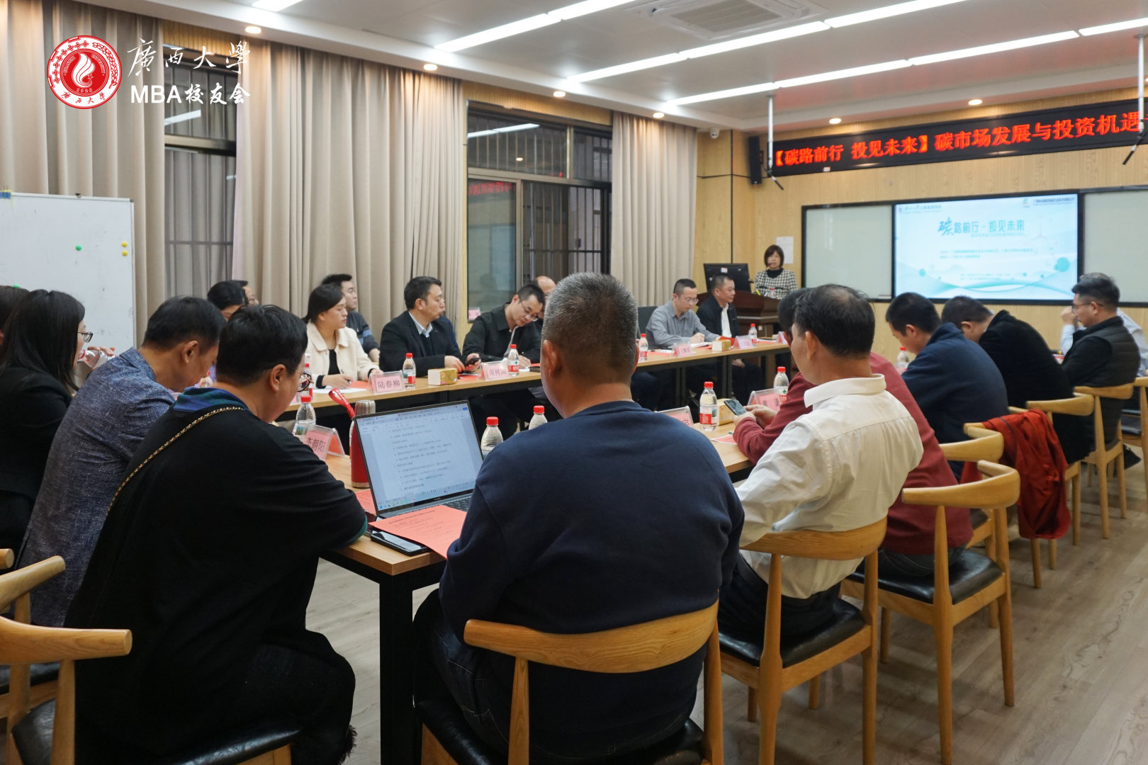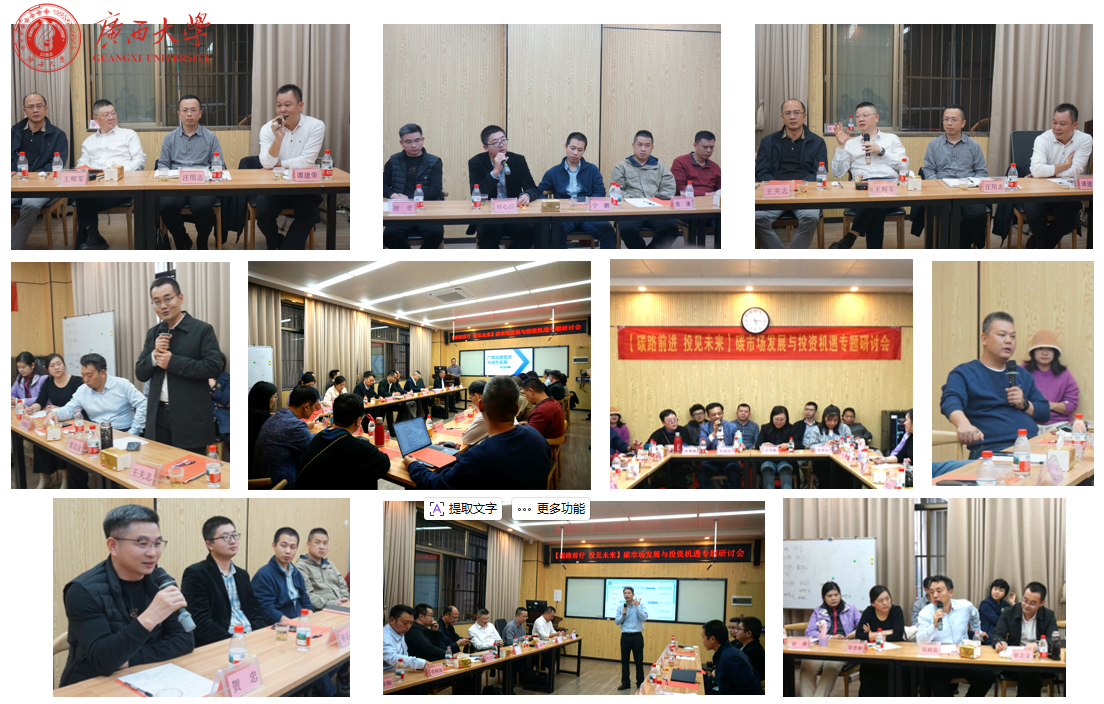 2026年1月17日下午,bat365官网联合beat365官方网站MBA校友会和广西林业集团低碳生态技术有限公司,在学院509C教室成功举办“碳路前行·投见未来”碳市场发展与投资机遇专题研讨会。本次研讨会旨在汇聚校友智慧,共探“双碳”战略下的市场趋势与投资路径,近30名学院教师、校友及企业家代表参加。