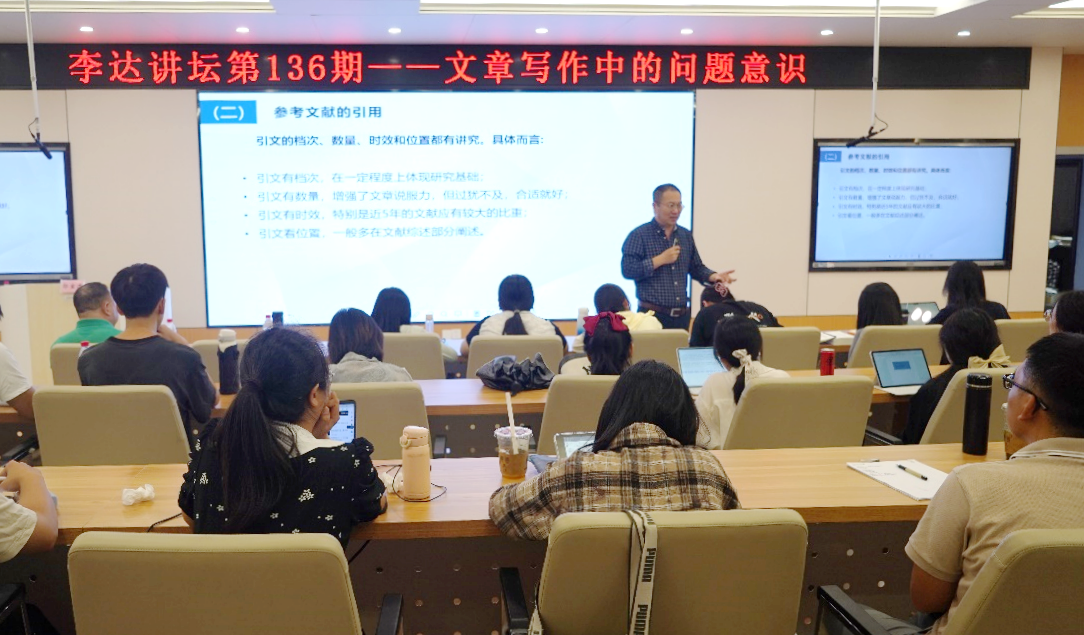 10月11日下午,浙江工商大学郭宝才教授受邀做客bat365官网第136期“李达讲坛”,在122报告厅为师生们带来题为“文章写作中的问题意识”的学术报告。本次讲坛由学院副院长刘民坤教授主持,学院专任教师以及博士生、硕士生到场学习交流。