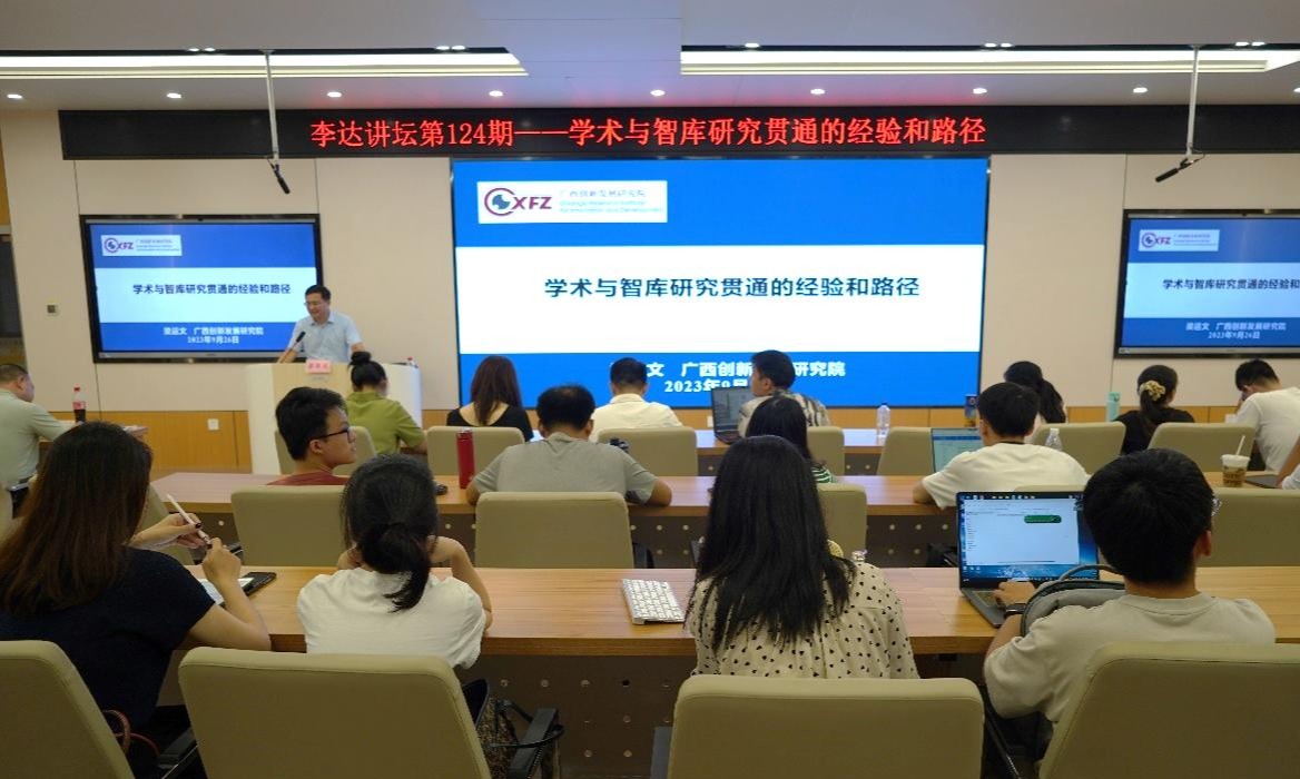 9月26日下午,广西创新发展研究院执行院长梁运文教授在bat365官网122报告厅为师生们带来一场题为“学术与智库研究贯通的经验和路径”的学术报告。本次讲坛由学院副院长刘民坤教授主持。