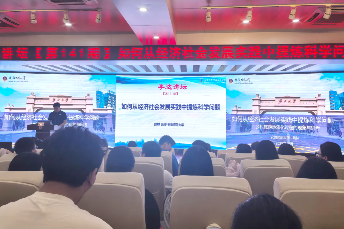 陆林长期致力于人文地理与旅游发展研究,在乡村旅游地演化、科学问题提炼等领域成果丰硕。报告中,他以乡村旅游“前旅游阶段”“旅游阶段”“后旅游阶段”演化过程为切入点,结合案例剖析其规律,强调科学问题提炼需扎根实践、紧扣时代需求,从理论框架构建、研究方法创新等方面为师生提供路径指引。他鼓励师生们要多到实践中去,通过实地调研、访谈等方式获取第一手资料,在与实践的互动中不断调整和完善研究思路,使提炼出的科学问题既具有理论深度,又能切实服务于经济社会发展。